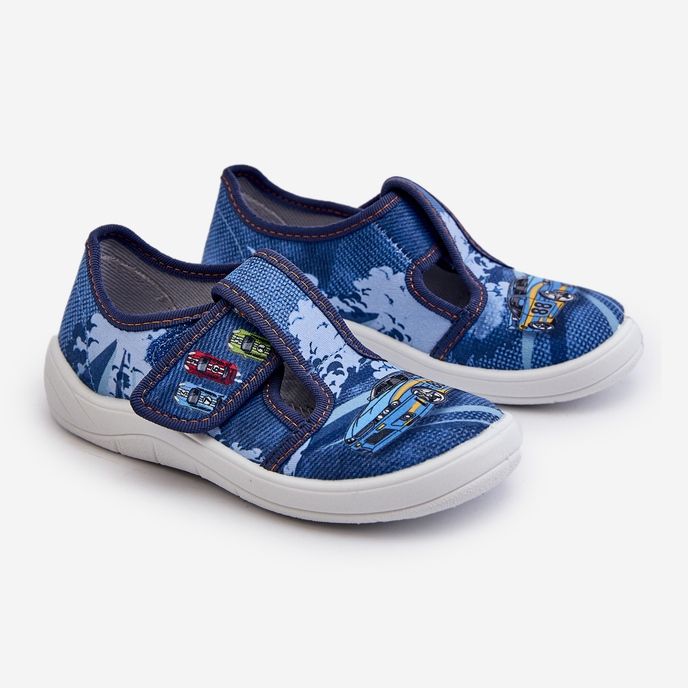 Os chinelos são presos com velcro prático, o que facilita a saída e a decolagem, e as pontas amplas oferecem espaço suficiente para os dedos, permitindo que você se mova livremente. Esses chinelos confortáveis têm a designação de "pé saudável", que confirma seu impacto positivo no desenvolvimento dos pés da criança.