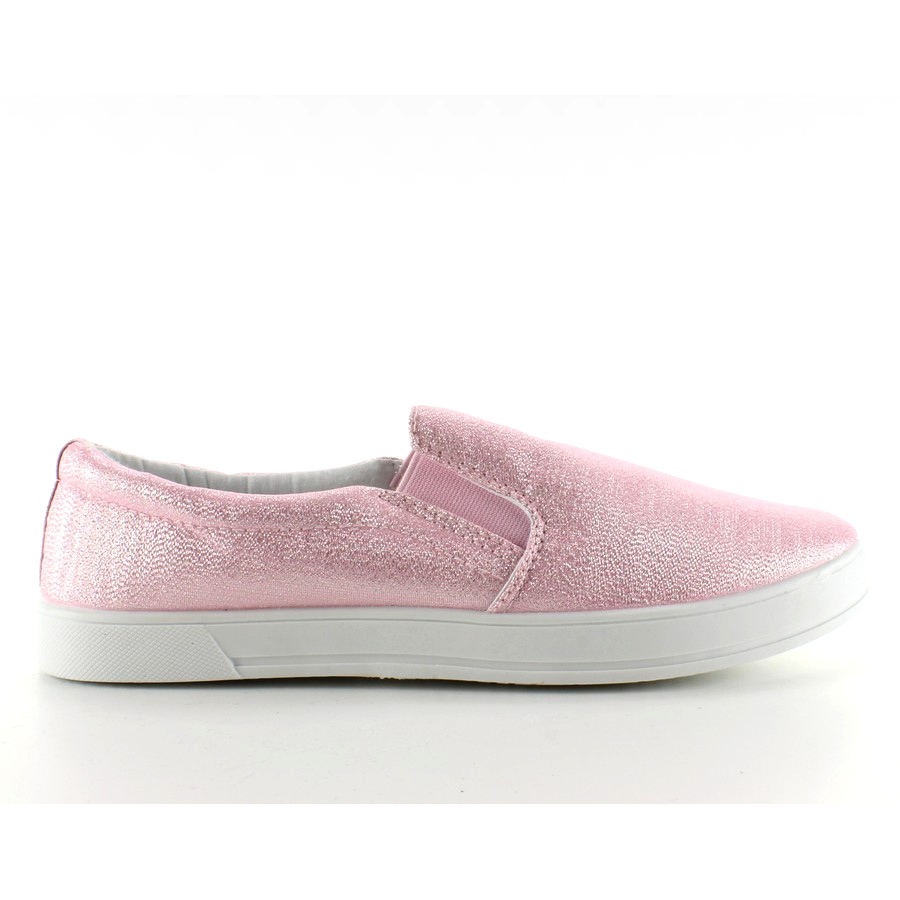 JX35 Slip-ons iridescentes rosa - tênis charmosos em tons pastéis que vão dar leveza a qualquer estilo. O cabedal confeccionado em tecido levemente iridescente muda sutilmente de tonalidade com a luz, enfatizando o rosa. O design slip-on e a sola baixa de 2 cm de altura garantem conforto no dia a dia, e a biqueira arredondada garante um visual elegante na perna. O conjunto é montado sobre uma sola branca contrastante, que confere ao calçado um caráter fresco e casual.