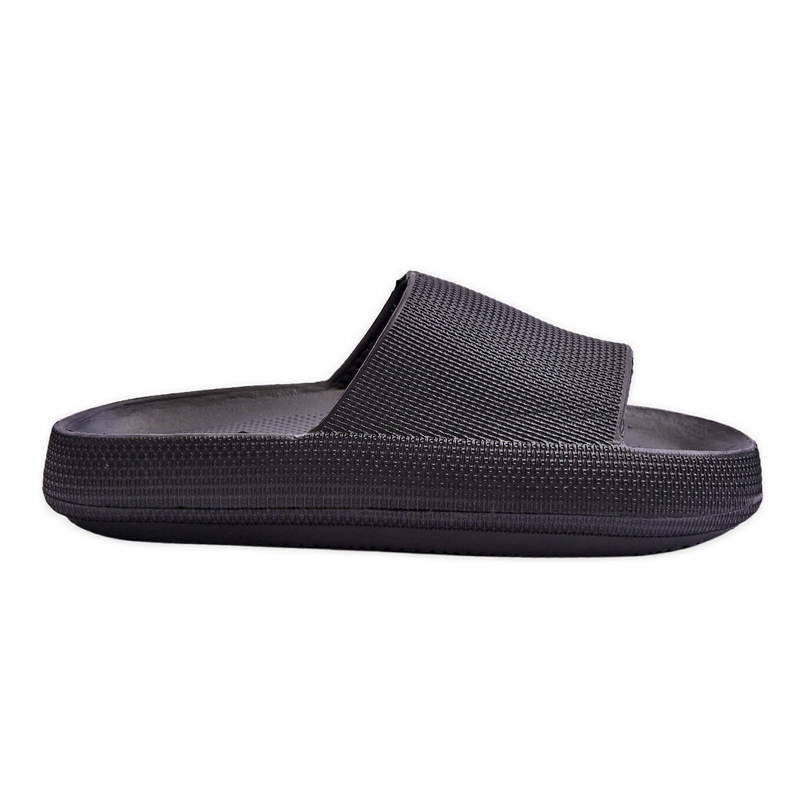 Detalhes: Chinelos leves da moda em uma sola maciça preta rebelde preto