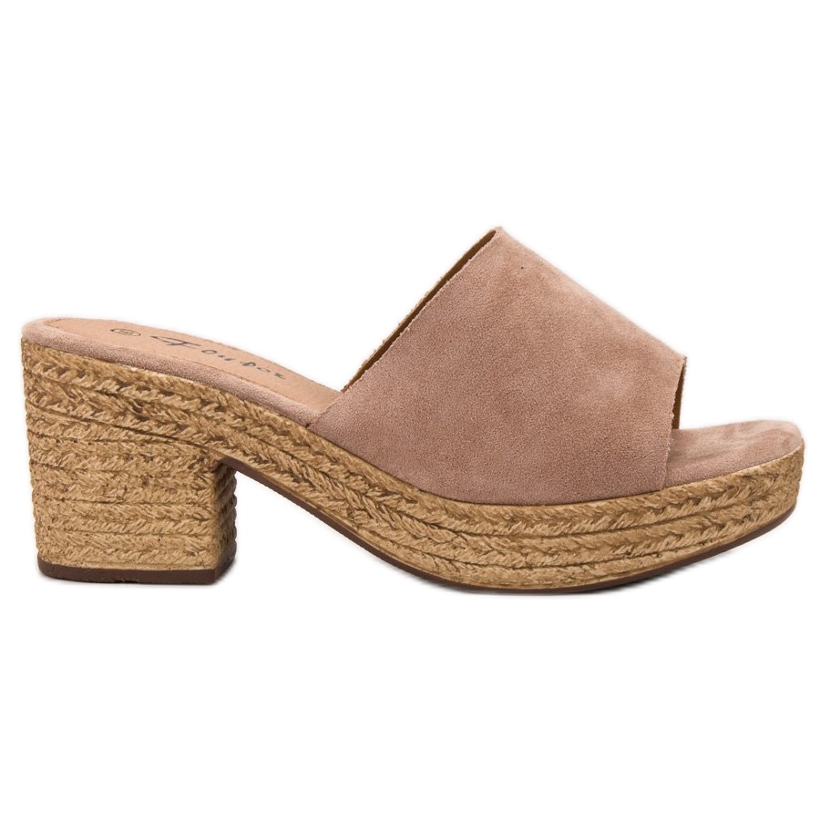 O modelo slip-on garante facilidade de calçar e ajuste perfeito ao pé, o que o torna a solução ideal para o uso diário. O tom rosa feminino se adapta perfeitamente às tendências da estação, agregando frescor a qualquer estilo. Graças à altura do salto de 7,5 cm e à plataforma de 3 cm de altura, estes chinelos não só alongam opticamente as pernas, mas também garantem estabilidade e conforto no uso.