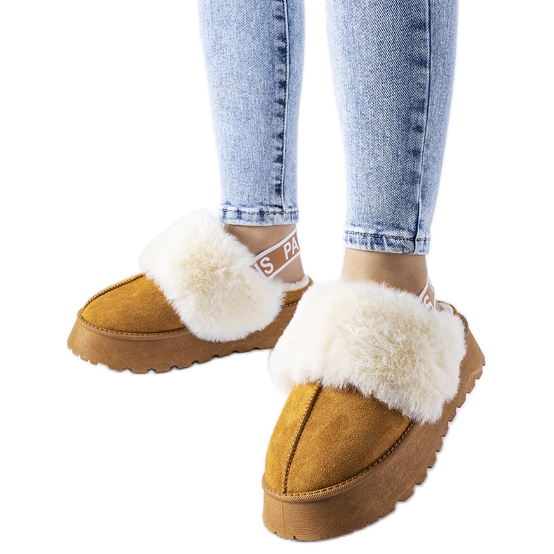 Os chinelos de mulheres elegantes e práticos da coleção de outono -inverno. Feito de tecidos de alta qualidade, com um pêlo suave e leve, o que garante excelente aquecimento e uma sensação agradável de calor. Um elástico flexível na parte superior facilita a inserção e a decolagem, mantendo um ajuste estável no pé. A cor clássica e redonda do dedo do pé e do camelo moderado (marrom) fazem o modelo se misturar bem com várias estilizações diárias.