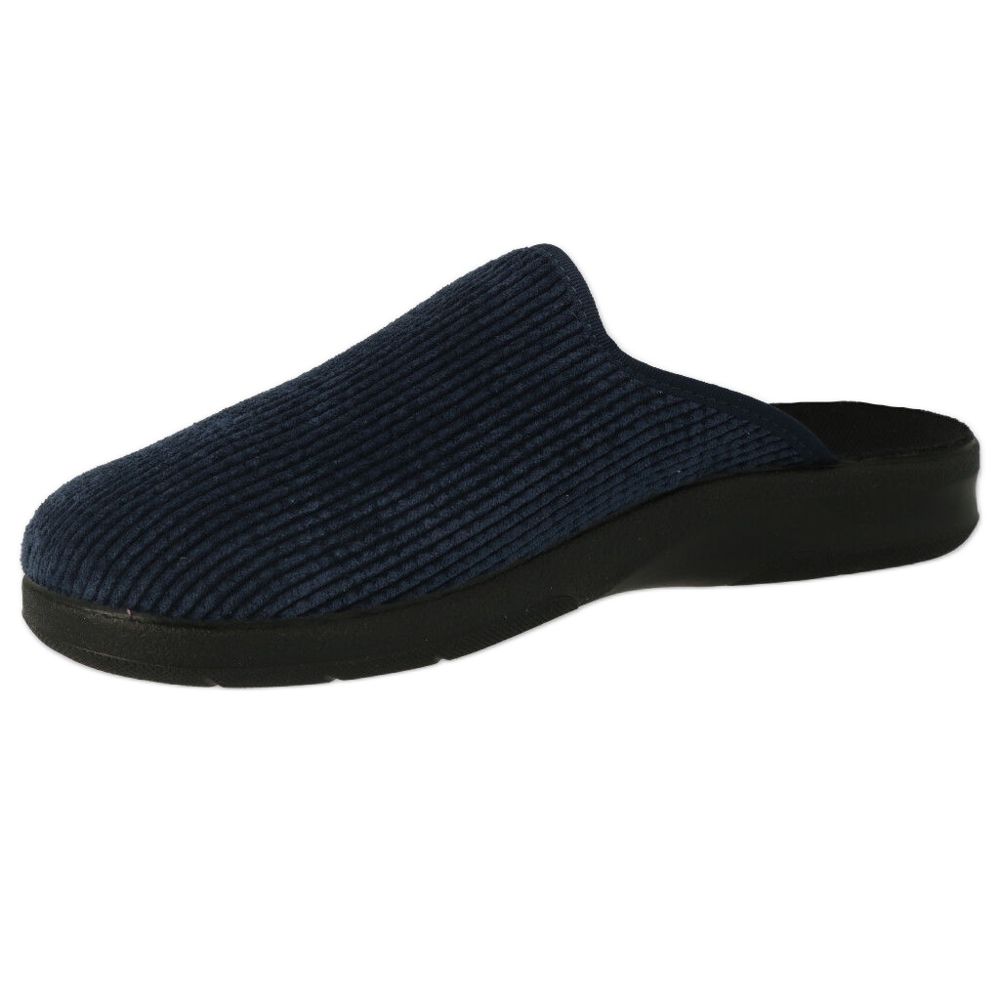 Detalhes: Chinelos masculinos Befado pu 548M029 veludo cotelê azul marinho