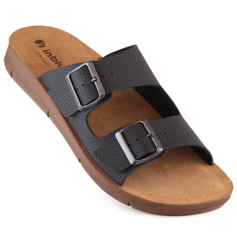 Inblu Chinelos masculinos confortáveis com fivelas pretas Inblu CM000028-014 preto
