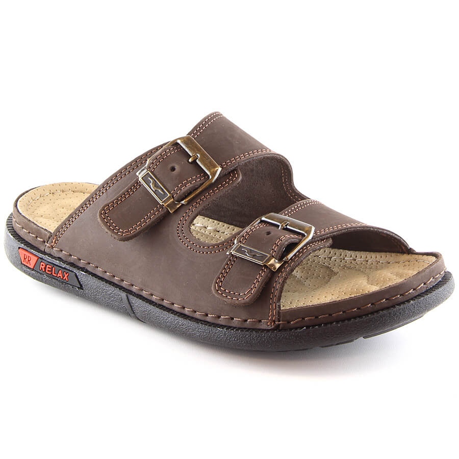 Detalhes: Chinelos masculinos confortáveis de couro com fivelas marrom T.Sokolski Fs M01 castanho