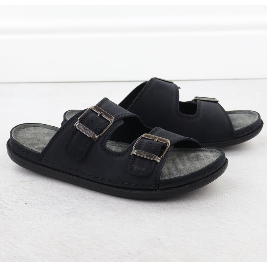 Detalhes: Chinelos masculinos confortáveis de couro com fivelas preto T.Sokolski Fs M01