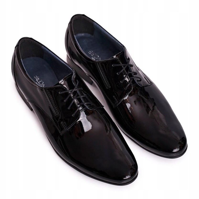 A altura do salto é de 2,0 cm, o que torna o calçado estável e elegante ao mesmo tempo. O modelo Bednarek Lakierowane Black irá agradar aos homens que valorizam o estilo moderno e elegante.