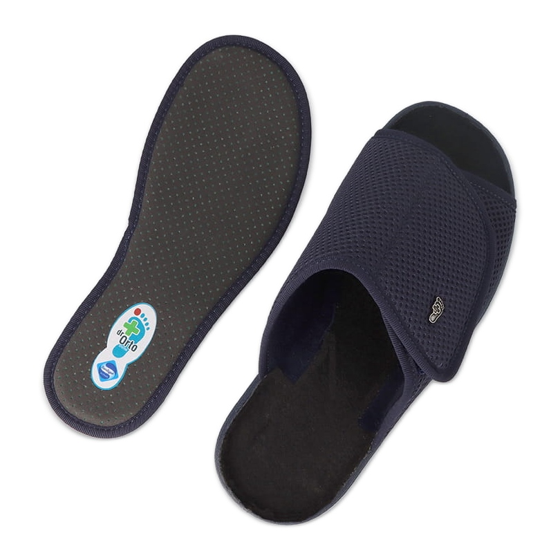 Detalhes: Chinelos masculinos Dr.ORTO Befado com velcro, pu 078M002, azul marinho