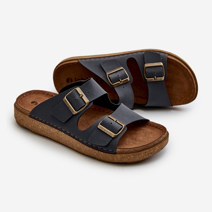 Os chinelos do Inblu MT000016 estão equipados com fivelas funcionais, o que não apenas aumenta o conforto do uso, mas também permite que você se adapte facilmente às necessidades individuais. A sola bege combinada com um tom azul marinho do topo cria um visual elegante e universal que é ótimo para a praia e em situações cotidianas.