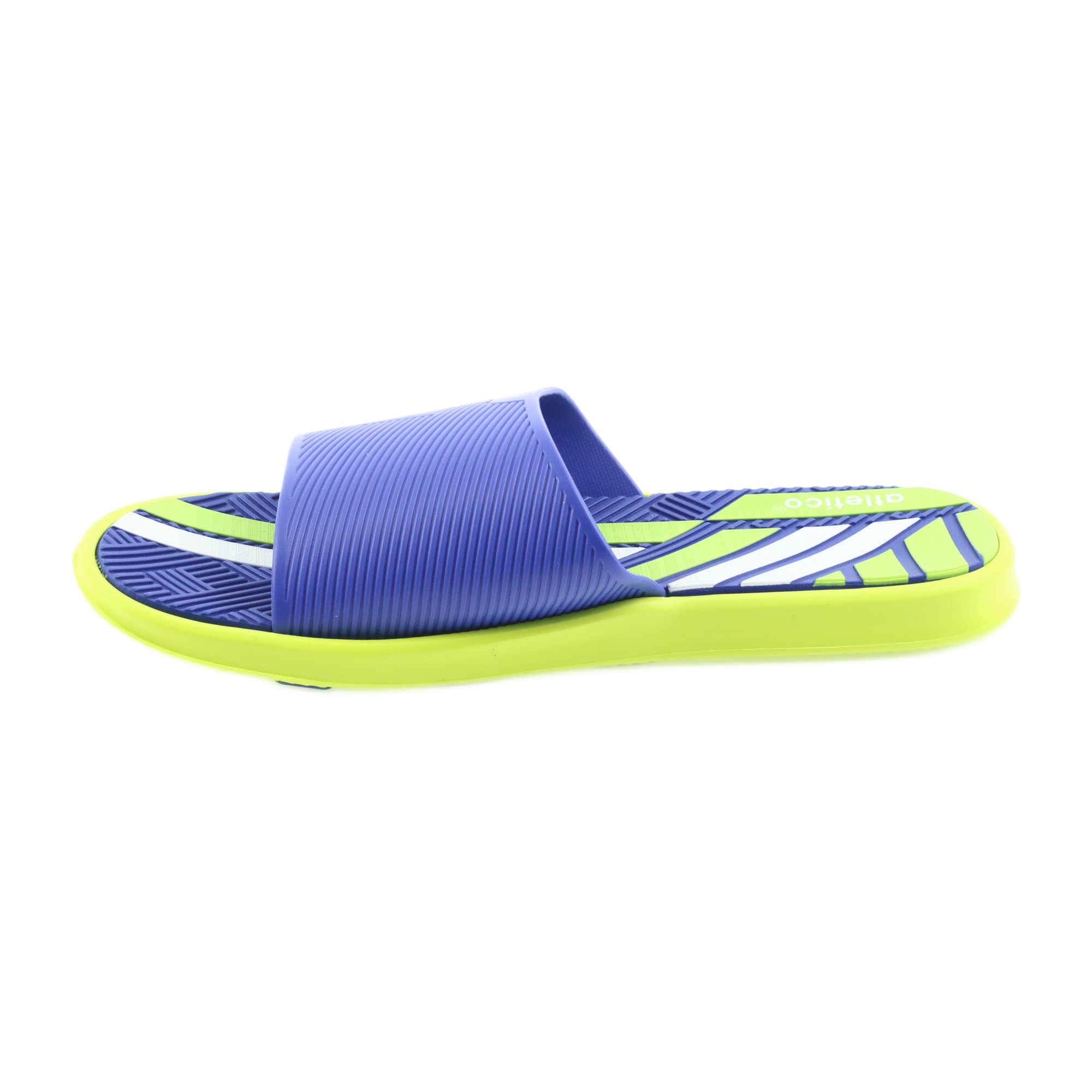 Descubra os chinelos de piscina masculinos nas refrescantes cores limão e azul da marca Atlético. Estes chinelos modernos combinam estilo e funcionalidade, perfeitos para a piscina, praia ou para usar em casa. Graças à sola ergonomicamente formada em espuma de borracha de alta qualidade, oferecem um conforto de uso sem precedentes e sua construção leve faz com que seus pés não se cansem mesmo após um longo período de uso.
