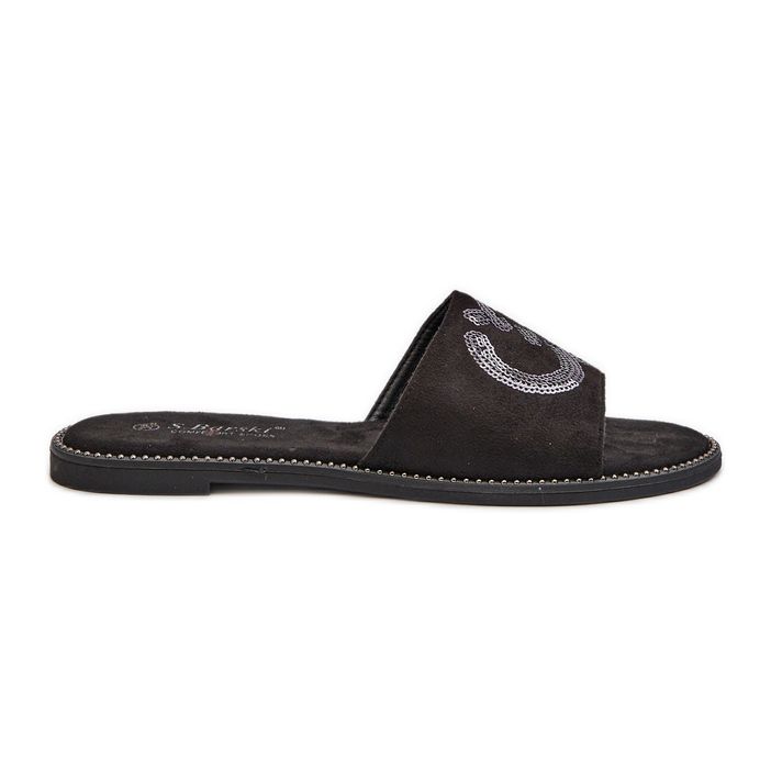 Detalhes: Chinelos planos femininos com lantejoulas S.Barski KV27-052 pretos