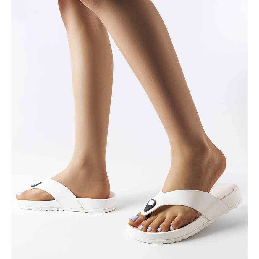 Os flip -flops elegantes e minimalistas em uma edição clássica e completamente branca - leves, confortáveis e perfeitos para os dias de verão. Um simples corte por plataforma de 2 cm adiciona um pouco de altura, mantendo o conforto.
