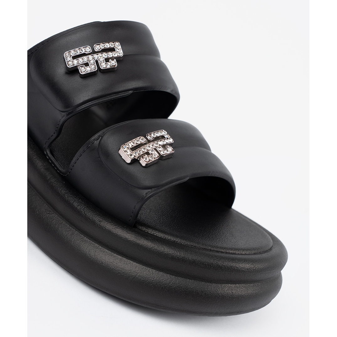 Esses chinelos também surpreendem com detalhes elegantes, como strass, que introduzem uma nota de luxo às estilizações cotidianas. Black os torna facilmente combinados com várias roupas - desde vestidos de verão, saias até jeans da moda.