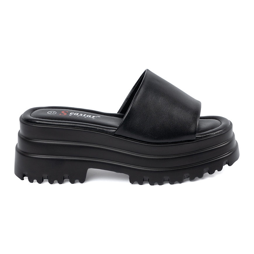 A plataforma de 7 cm de alta não apenas oferece crescimento, mas também garante estabilidade e certeza da etapa. Feito de tecido de alta qualidade, os chinelos de Seastar são agradáveis ao toque, e sua inserção de couro ecológica garante o conforto de uso ao longo do dia.
