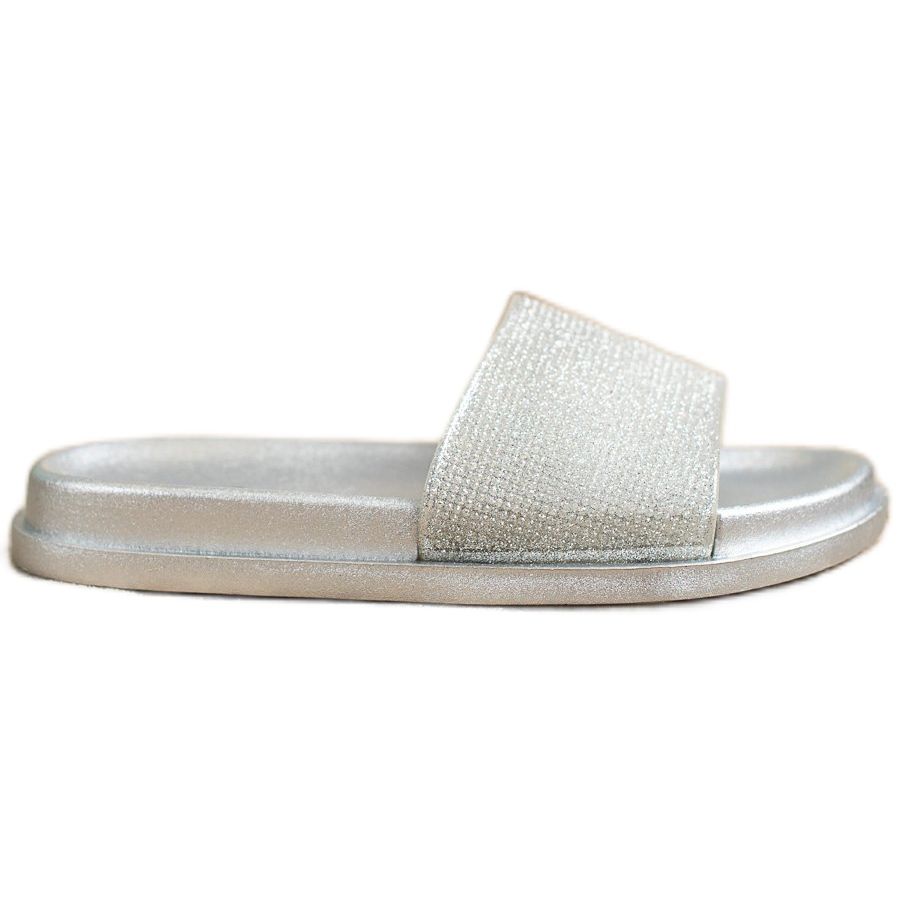 Os chinelos SHELOVET Silver Shiny são perfeitos para a primavera e o verão. Graças à sola sintética com banda de rodagem, você pode desfrutar de segurança em diversas superfícies. Independentemente da ocasião - seja um passeio na praia, um encontro com amigos ou um relaxamento no jardim - estes chinelos serão um complemento perfeito para o seu guarda-roupa.