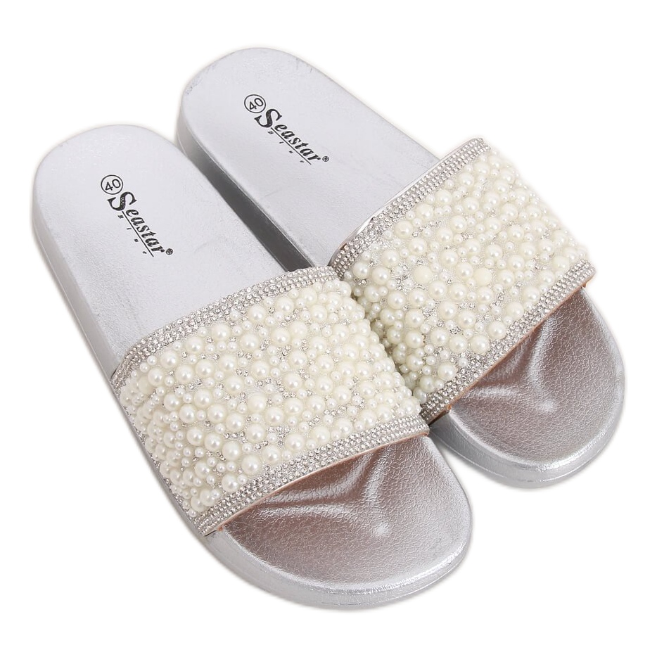 Detalhes: Chinelos prateados com pérolas BG63 Silver cinza