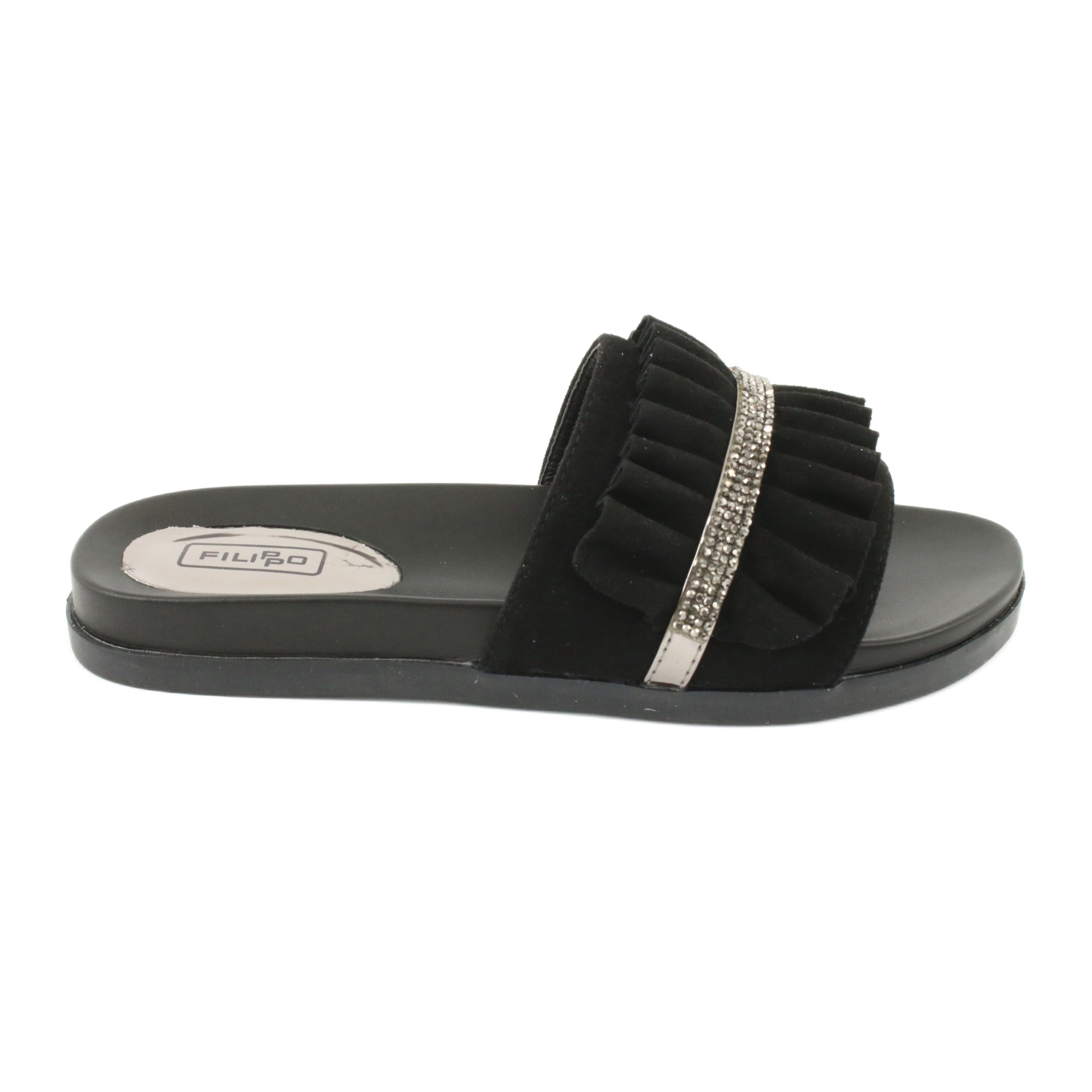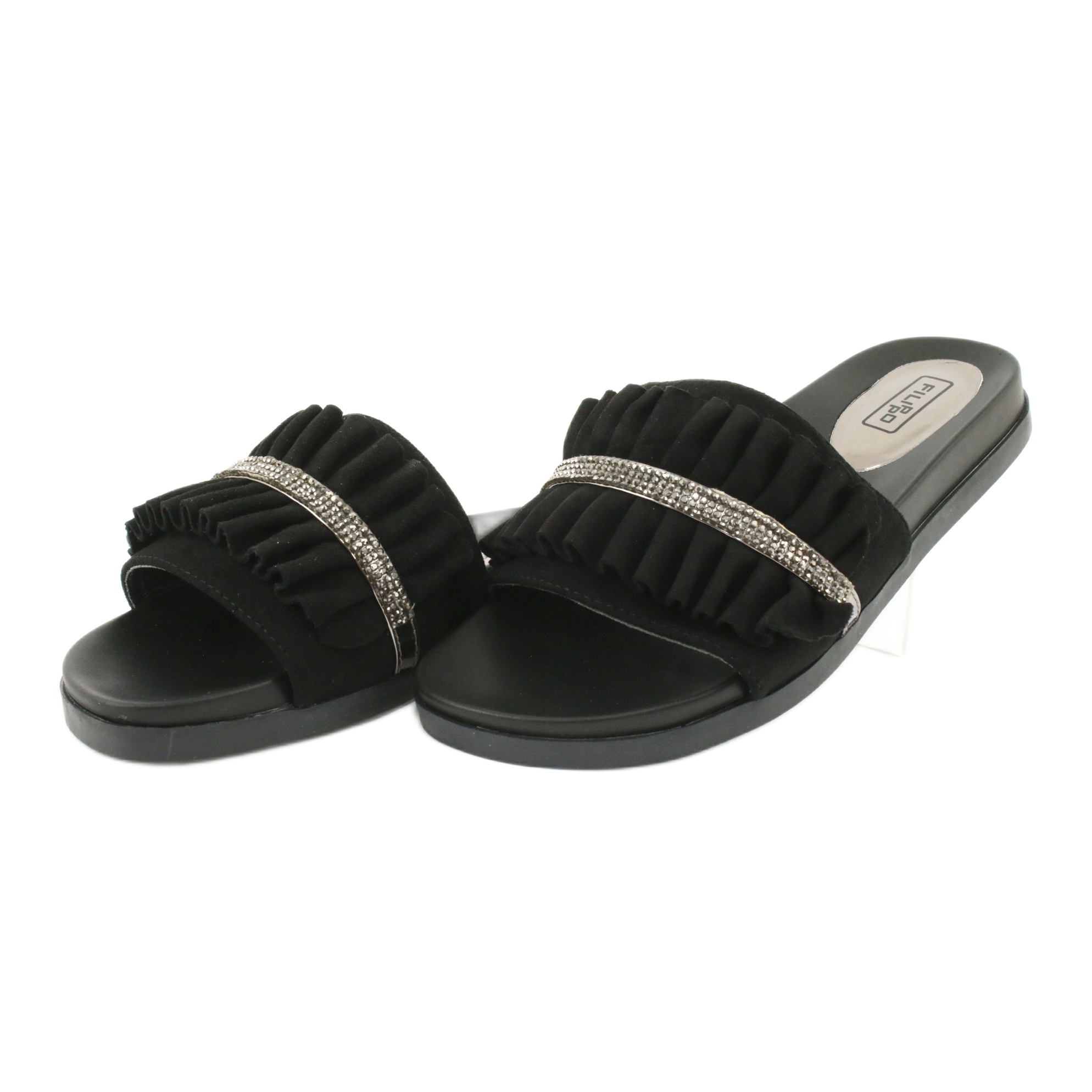 Filippo Filippo Chinelos pretos com babados e zircões
