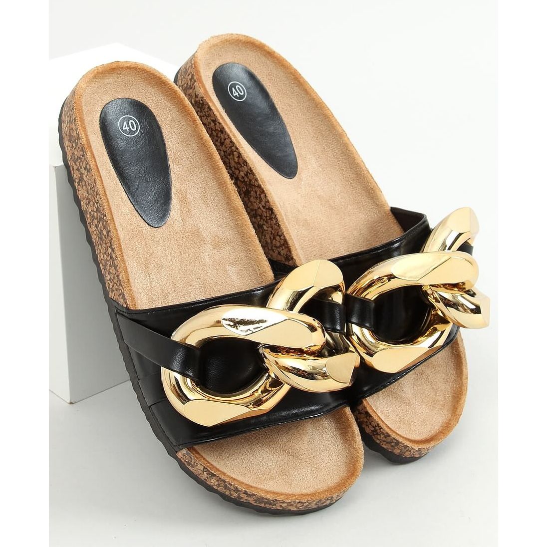Inna marka Chinelos pretos com corrente grossa preta CK201 preto