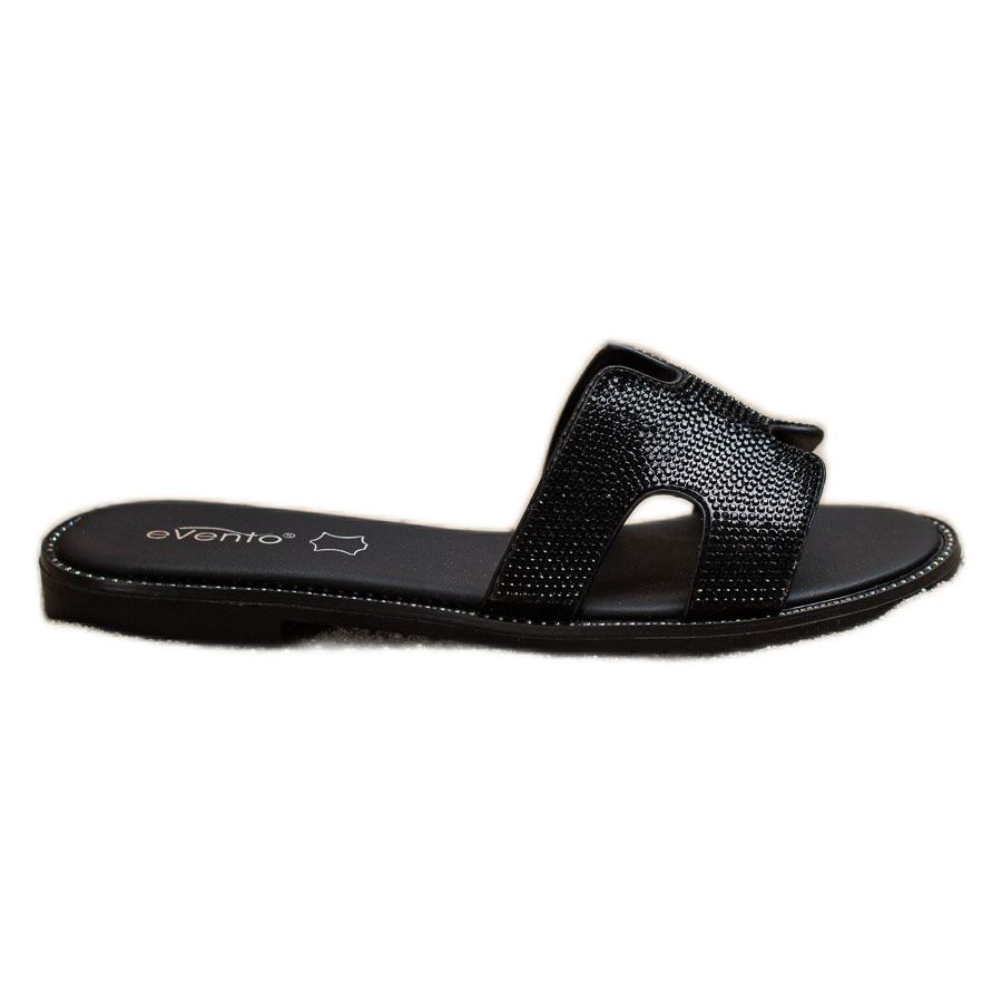 Os chinelos Evento pretos com cristais são a escolha perfeita para mulheres que desejam aliar conforto com elegância. Estes elegantes chinelos são perfeitos para o uso diário, adicionando um pouco de brilho a qualquer roupa graças aos strass e cristais cuidadosamente colocados. O salto plano de 1,5 cm torna-os confortáveis de usar e o salto aberto facilita a colocação e a retirada.