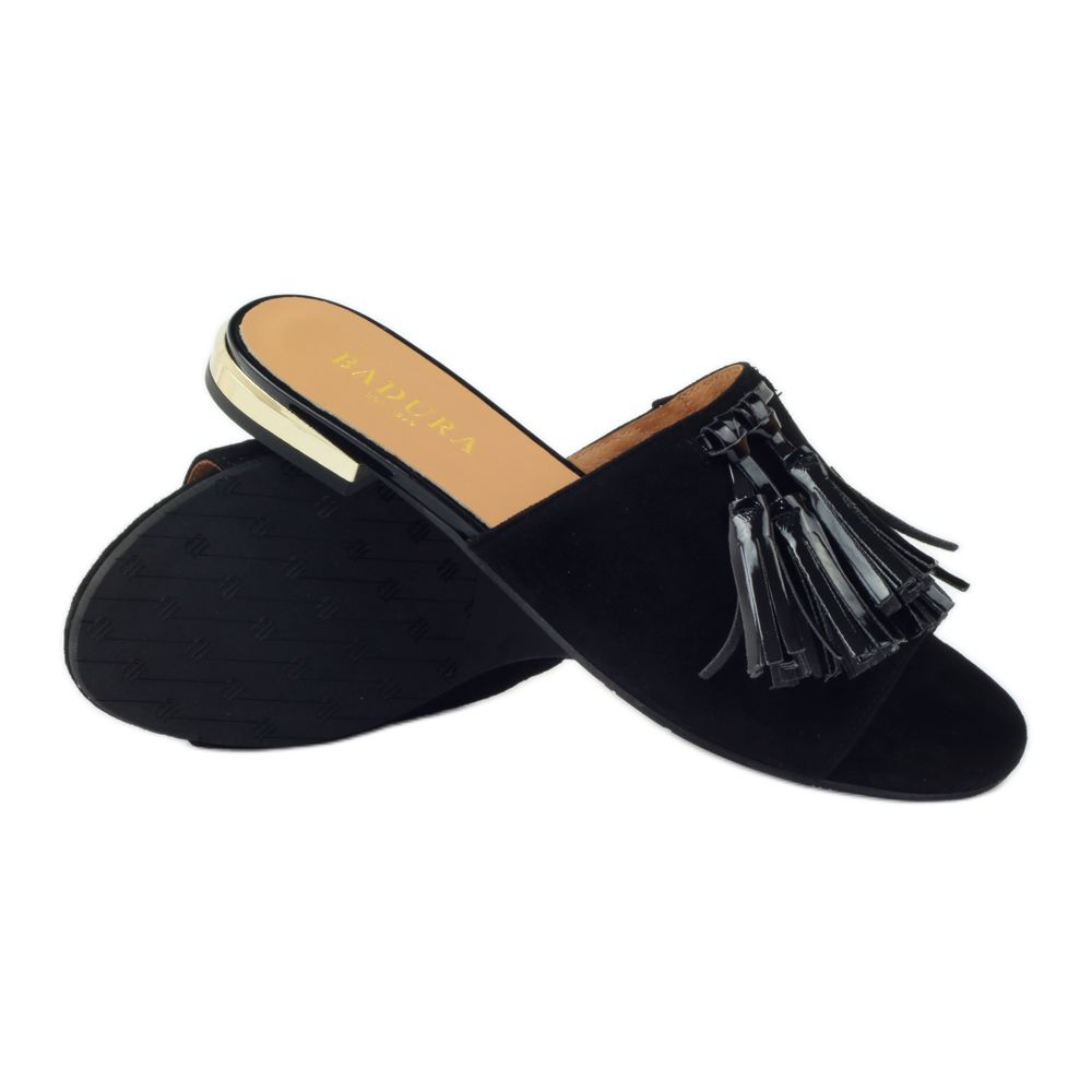Detalhes: Chinelos pretos com franjas Badura 5133 preto amarelo