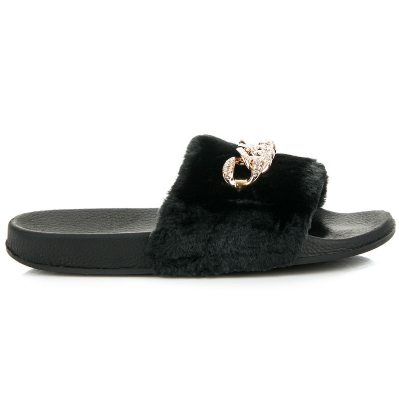 Detalhes: Queen Vivi Chinelos pretos com pele