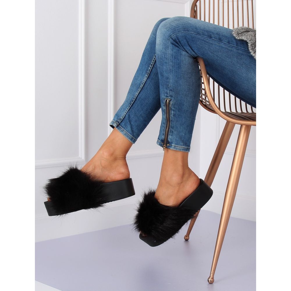 Inna marka Chinelos pretos com pêlo preto CK77P Preto II-GAT