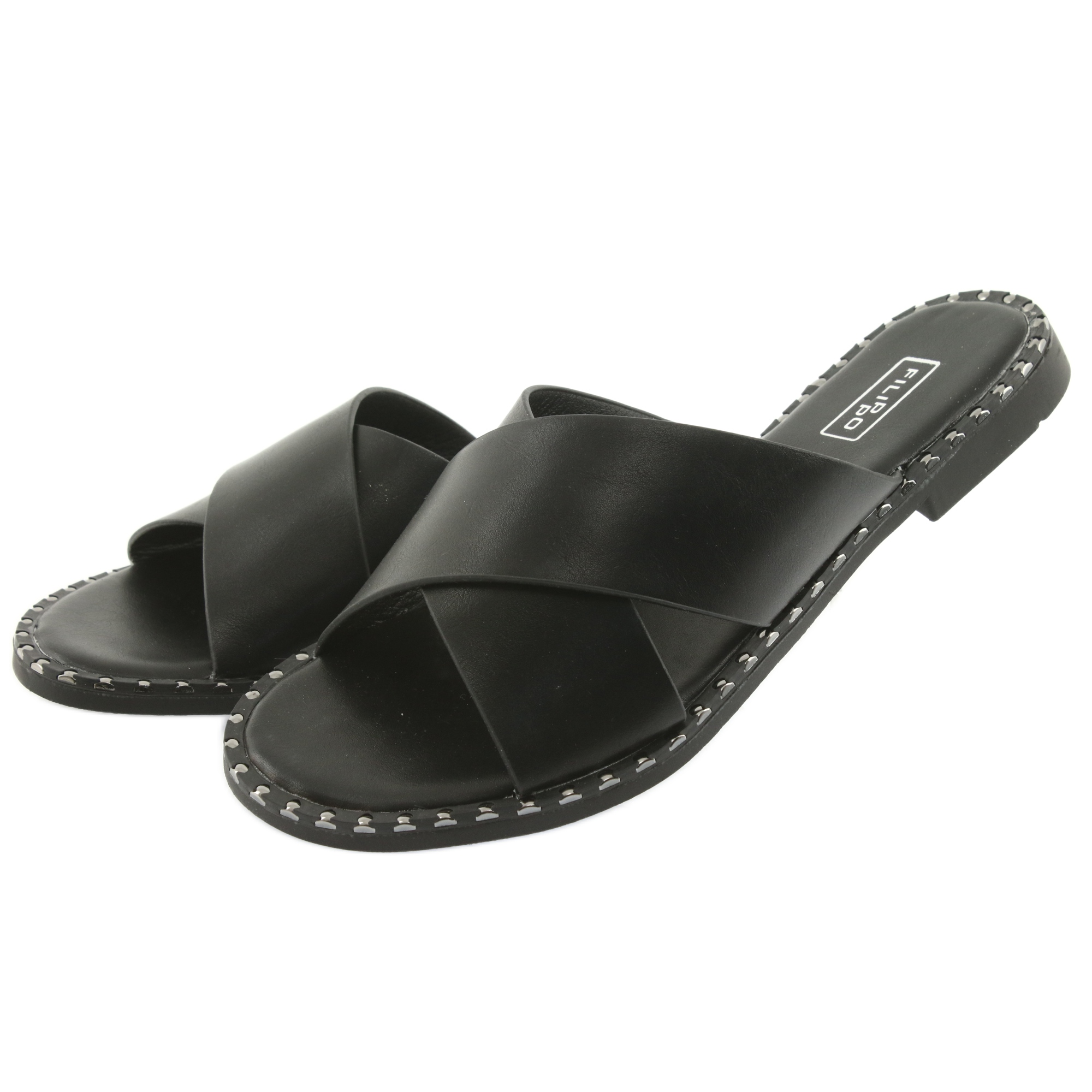 Os chinelos pretos com tachas da marca Filippo são a escolha ideal para mulheres que querem aliar conforto com um pouco de elegância. Seu design exclusivo os torna não apenas um calçado de verão perfeito, mas também um elemento moderno de qualquer estilo.