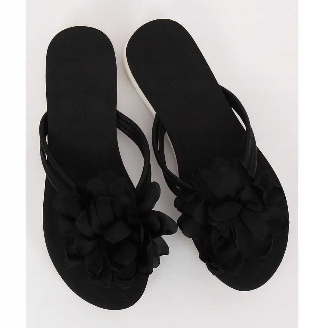 Inna marka Chinelos pretos com uma flor CK103 preta