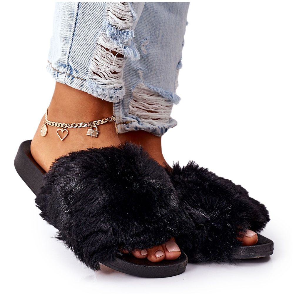 FJ1 FJ1 Chinelos pretos de borracha macia com pele