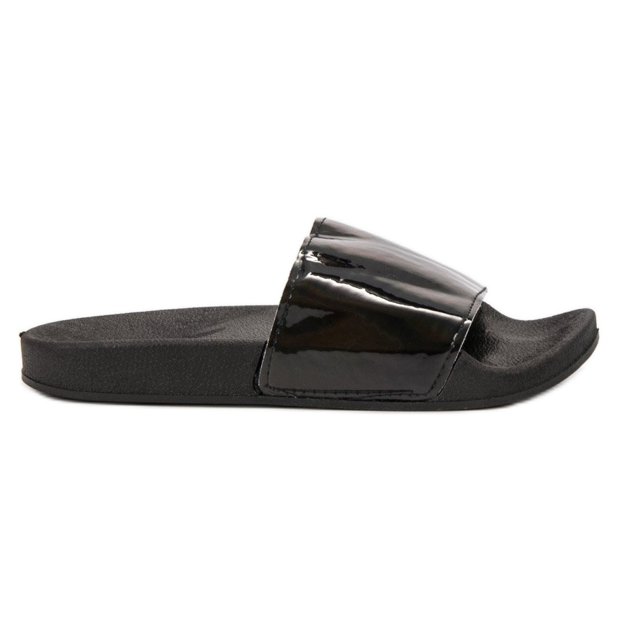 Estes elegantes chinelos serão um complemento perfeito para o seu guarda-roupa de primavera e verão. Combinam tanto com jeans quanto com vestidos de verão, o que os torna um elemento versátil nos looks do dia a dia. Além disso, o seu acabamento lacado confere-lhes um aspecto elegante que chama a atenção.