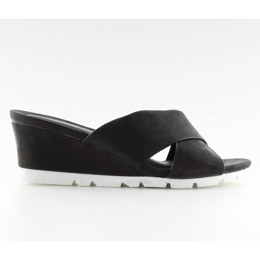 Detalhes: Chinelos pretos em um Y-8219 preto de cunha baixa
