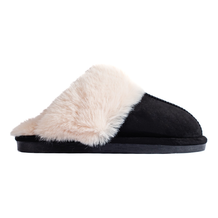 Os chinelos femininos elegantes e confortáveis do Shelvet, projetados para uso diário em casa e durante saídas curtas. O final preto e têxtil em combinação com pêlo macio dentro oferece calor e conforto agradáveis ao longo da temporada.