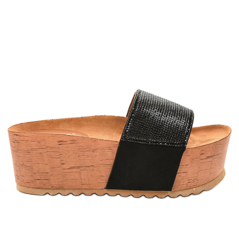 Deixe que estes chinelos plataforma pretos 77-99 se tornem um elemento chave do seu guarda-roupa, oferecendo um visual moderno e conforto de uso todos os dias.