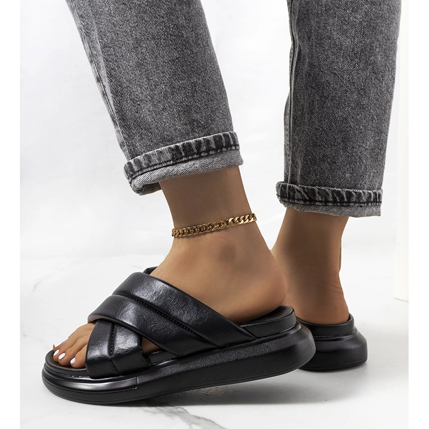 Detalhes: Chinelos pretos na plataforma Allport