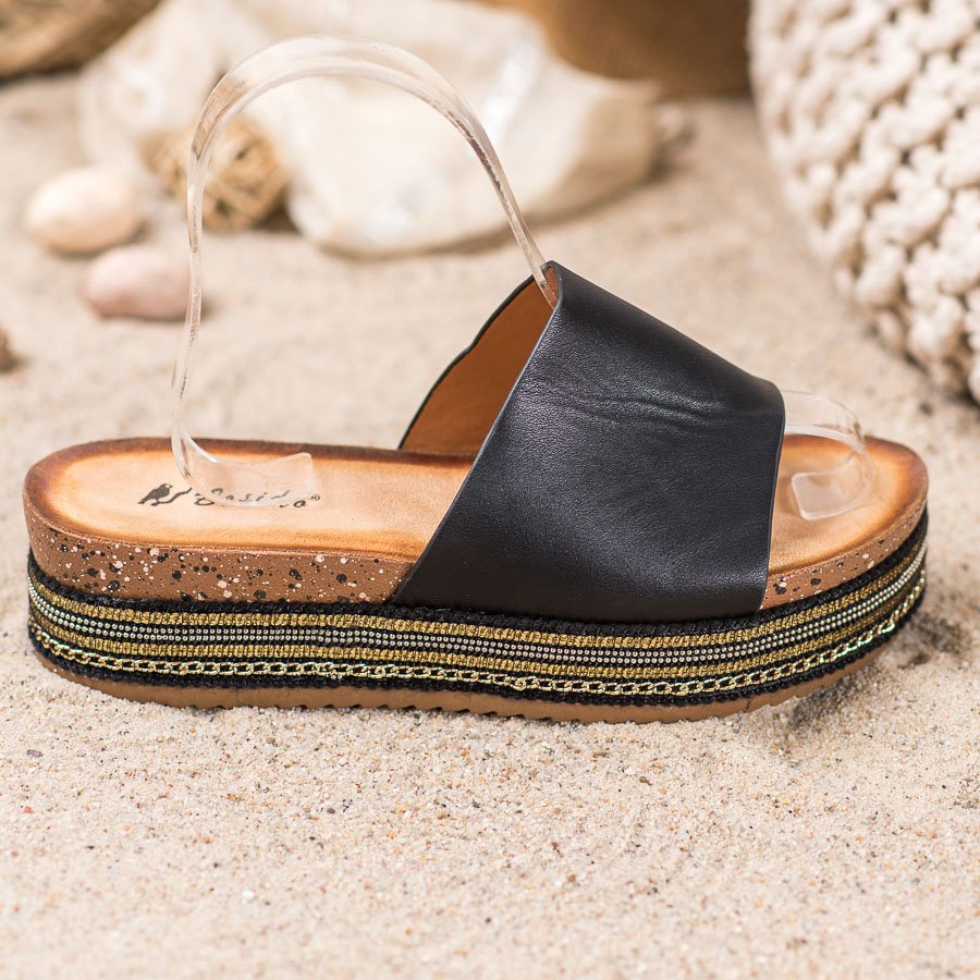 Detalhes: SHELOVET Chinelos pretos na plataforma