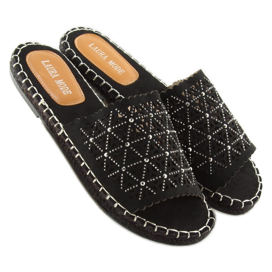 Seu padrão vazado e decorações atraentes em forma de pedras brilhantes chamam a atenção e adicionam um toque de glamour a cada estilo. Confeccionados em camurça ecológica, os chinelos são agradáveis ao toque e confortáveis para os pés. A sola colorida, enfeitada com cordão de linho, confere-lhes um carácter original.