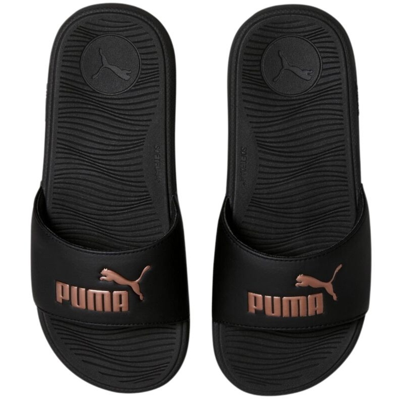 Elegante e confortável Puma feminino Cool Cat 2.0 Mulheres de preto com detalhes dourados. Perfeito para o verão - para a praia, piscina e para uso diário. A combinação de um estilo simples com a tecnologia Softfoam+ oferece conforto ao longo do dia.