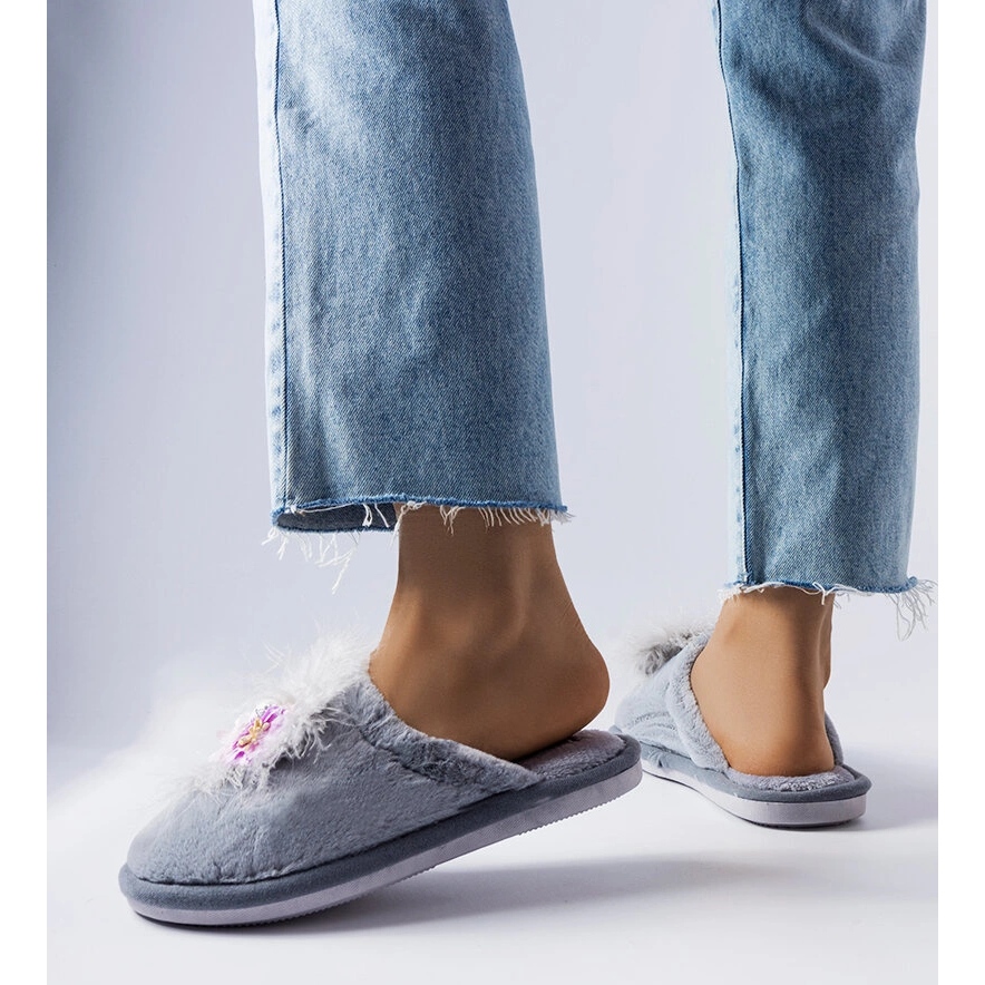 Flipers cinzentos chinelos com uma lata floral - quente, confortável e elegante. O pêlo macio no interior mantém os pés a uma temperatura agradável, e o padrão floral encantador e multi -colorido adiciona charme clássico aos conjuntos de casas diários. Perfeito para manhãs e noites legais, quando o conforto é o mais importante.