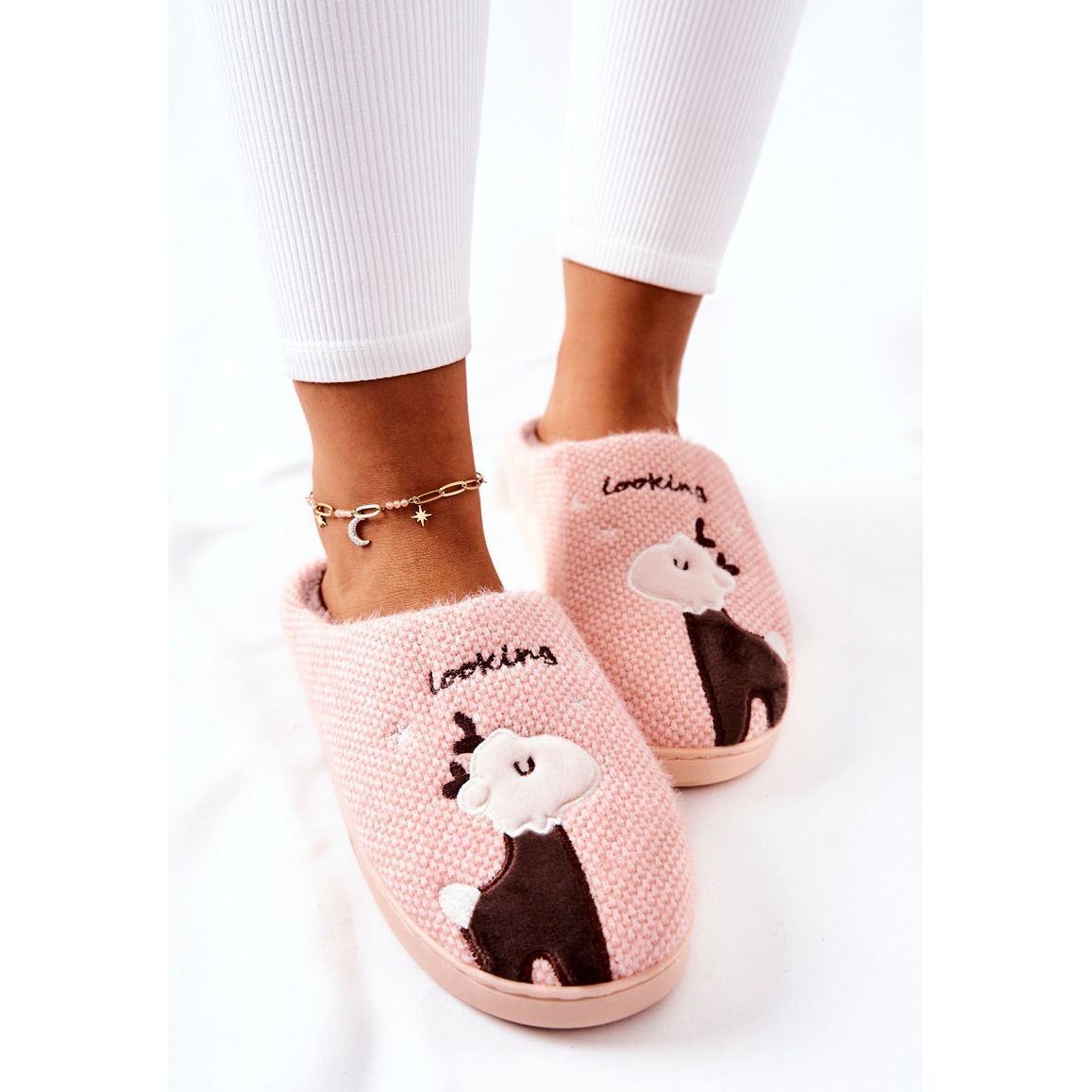 Papcie isolou Jilly com um motivo de rena - conforto e calor nos dias mais frios. Macio, agradável ao toque, perfeito para casa como chinelos elegantes e práticos.