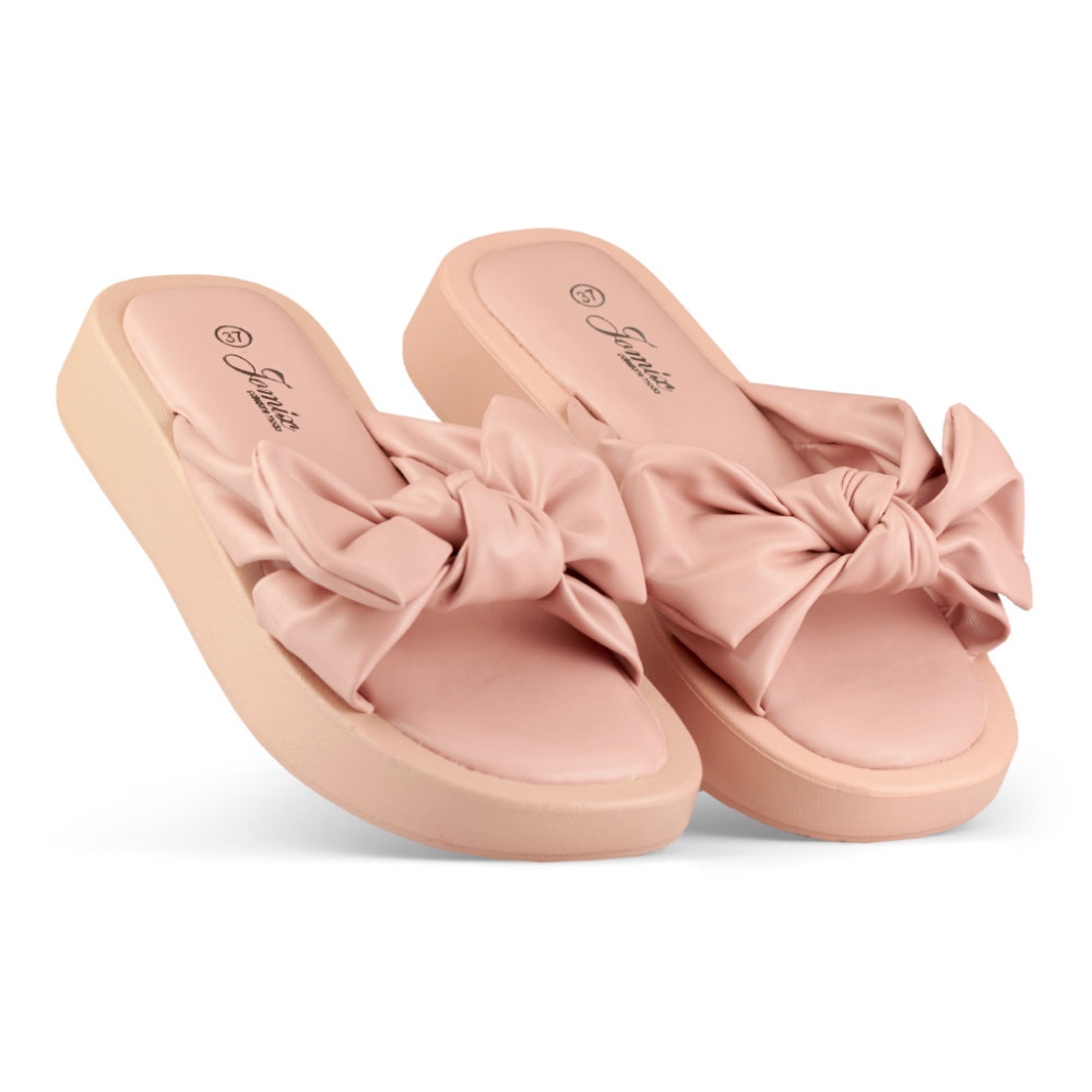 Os designers apostaram na simplicidade e na elegância, que se expressam no design minimalista e no moderno tom pastel de rosa, que confere aos sapatos um charme feminino. Uma característica desses chinelos é um delicado laço colocado na frente do calçado, conferindo-lhes uma beleza sutil e um caráter único.