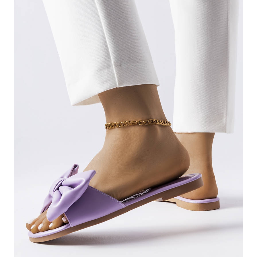 Detalhes: Chinelos roxos elegantes com laço da Garnier