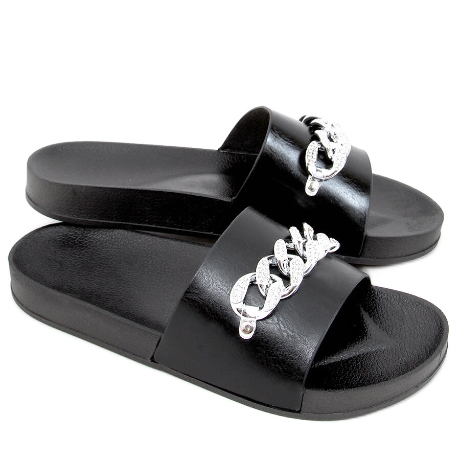 Apresentamos os chinelos de corrente Tilia Black - um must-have desta temporada para todas as mulheres elegantes! Estes elegantes chinelos pretos distinguem-se por uma elegante corrente decorada com pedras brilhantes, que chama a atenção e acrescenta um carácter único a qualquer estilo. Graças ao salto plano e à palmilha interior perfilada, são confortáveis de usar durante todo o dia - perfeitos para o uso diário!
