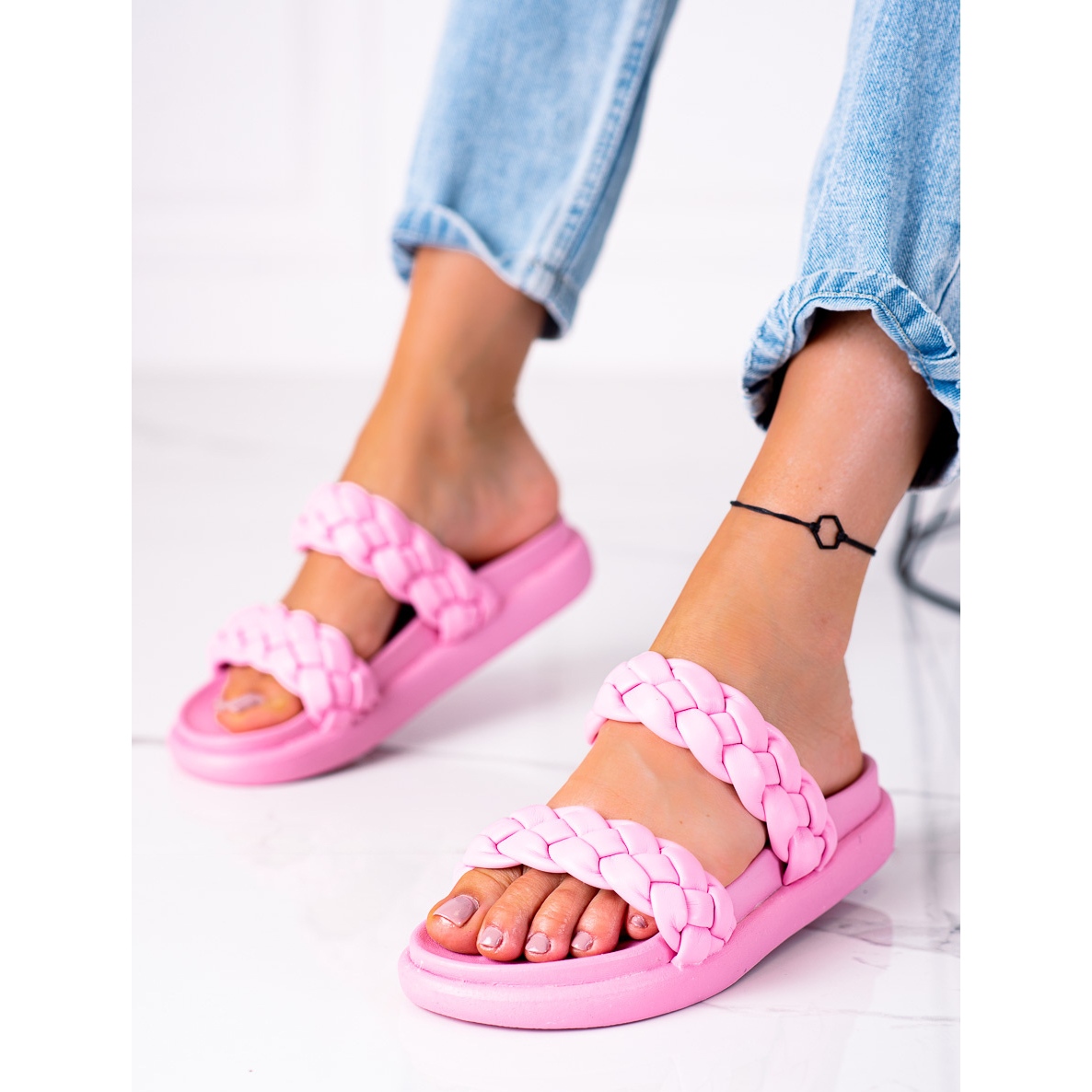 SHELOVET SHELOVET Chinelos trançados na plataforma rosa