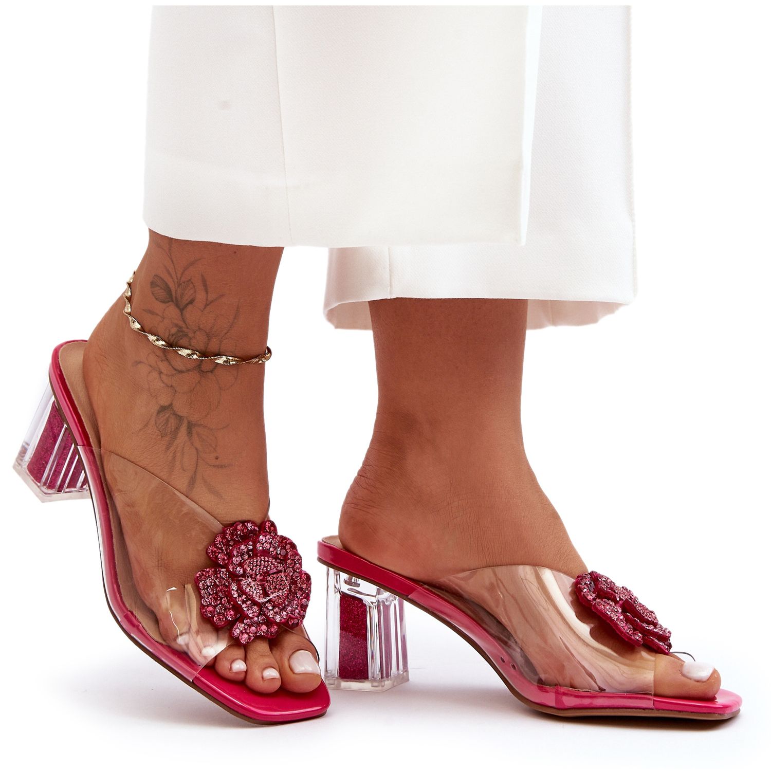 Detalhes: Chinelos transparentes de salto alto com decoração fúcsia S.Barski MR1037-20 rosa