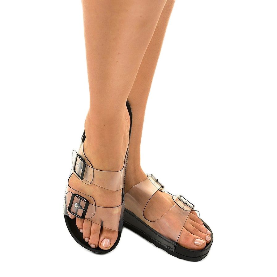 Detalhes: Chinelos transparentes pretos com fivela SE-9605 multicolorido