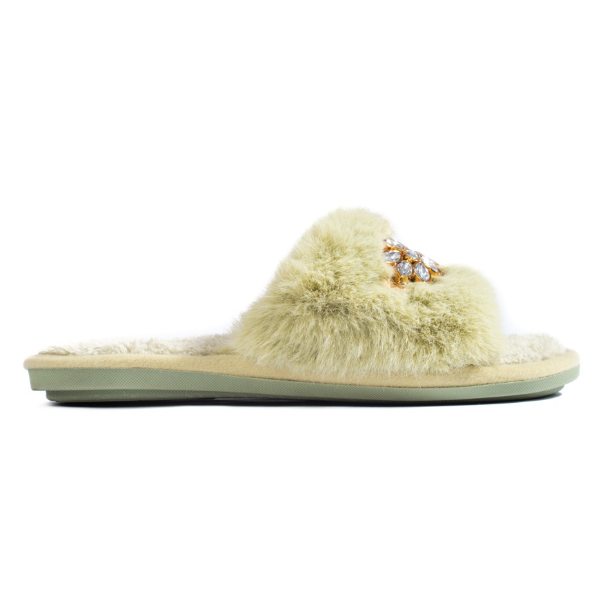 SHELOVET Chinelos verde-oliva com pele e cristais da Shelovet
