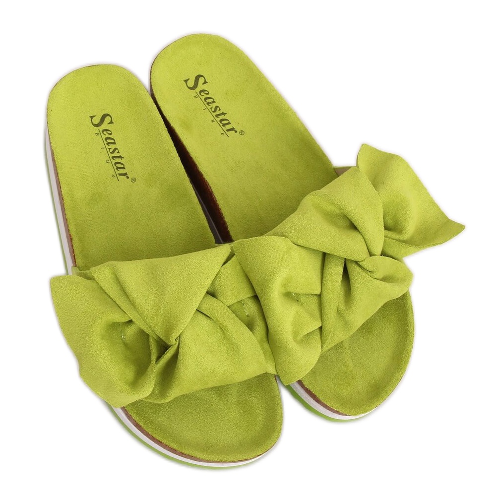 Apresentamos os chinelos femininos verdes SS116P Green - a escolha perfeita para os dias de verão! Feitos em camurça ecológica, esses estilosos chinelos encantam não só pela cor única, mas também por um impressionante laço grande que destaca sutilmente qualquer estilo.