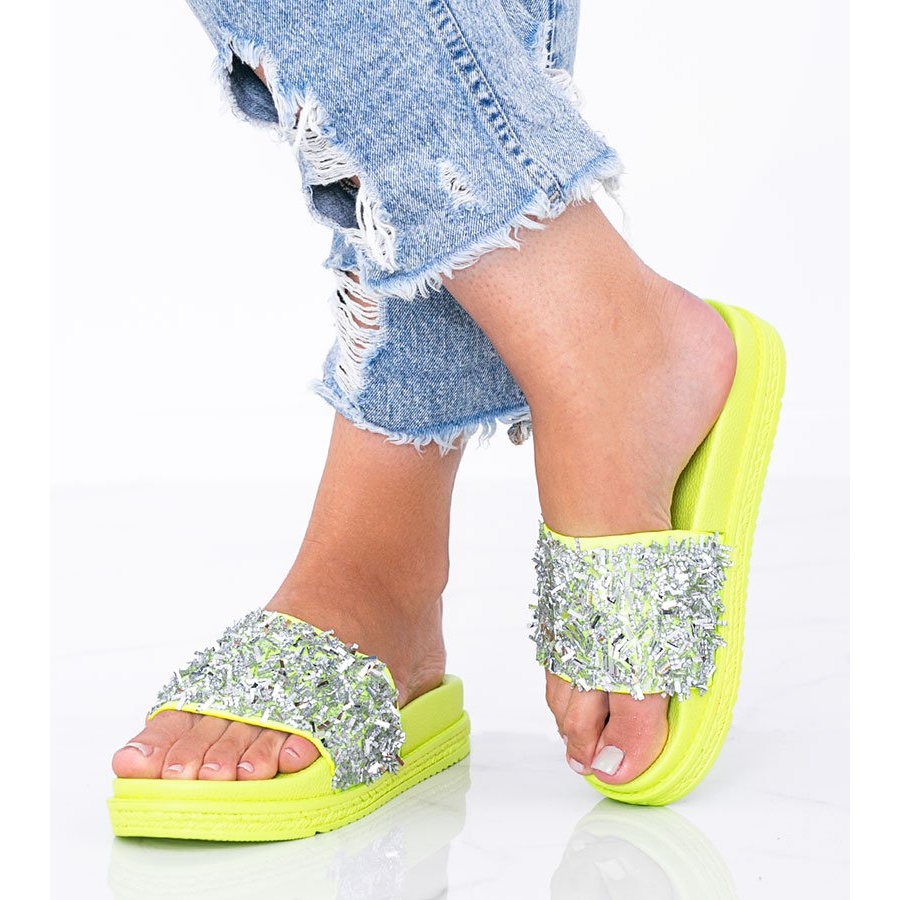 Os chinelos Love Bling não estão apenas na moda, mas também uma solução prática para todas as mulheres que querem se destacar na multidão. Graças à sua cor verde, enquadram-se perfeitamente nas tendências do verão e o seu design minimalista mas eficaz faz com que combinem com vários estilos. Uma sola de borracha confortável e uma biqueira redonda aumentam ainda mais o conforto de uso.
