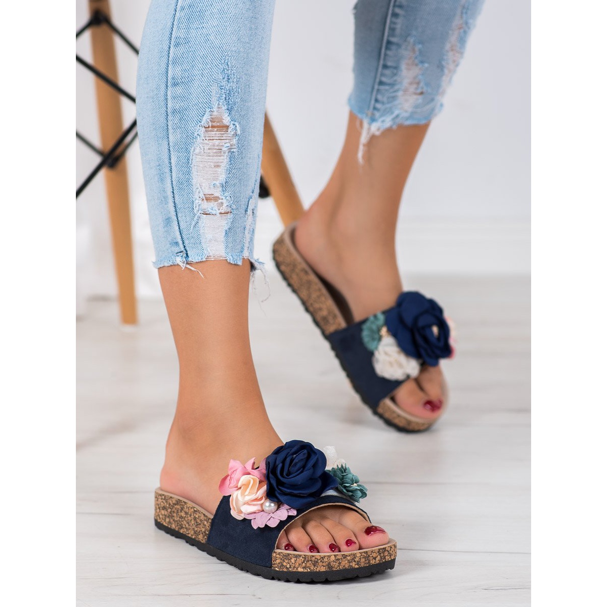 Detalhes: Chinelos VINCEZA com flores azul marinho azul multicolorido