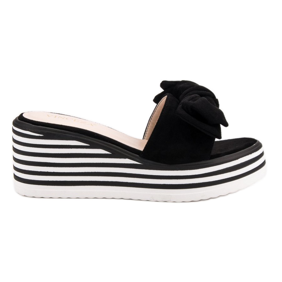 Elegantes e casuais ao mesmo tempo - as sandálias pretas de cunha Vinceza são a escolha perfeita para toda mulher moderna que deseja combinar conforto com as últimas tendências da moda. Escolha-os para a próxima temporada e desfrute do conforto de cada passo!