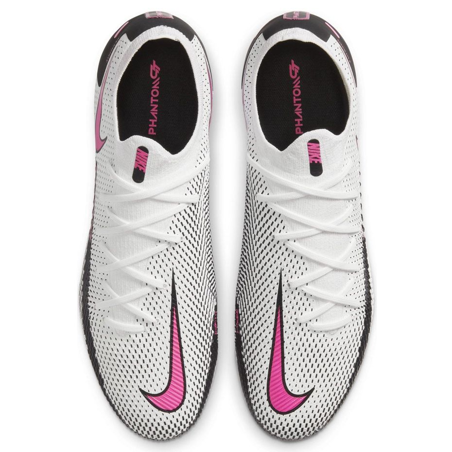 Detalhes: Chuteira Nike Phantom Gt Pro Fg CK8451 160 branco, preto, rosa branco